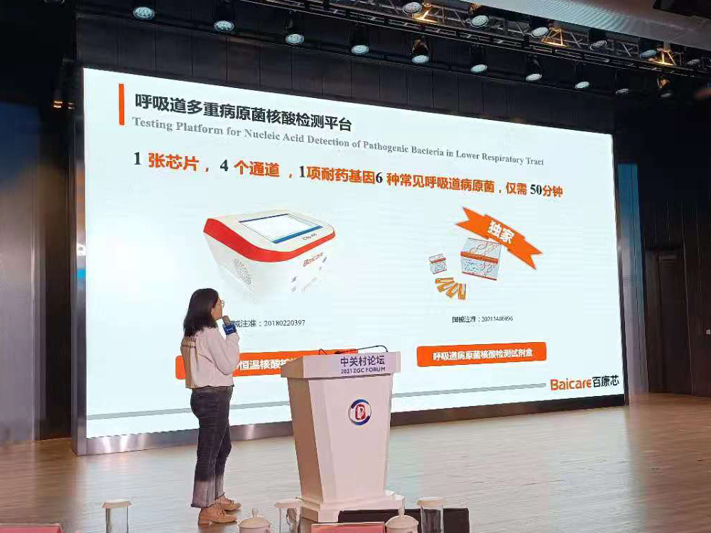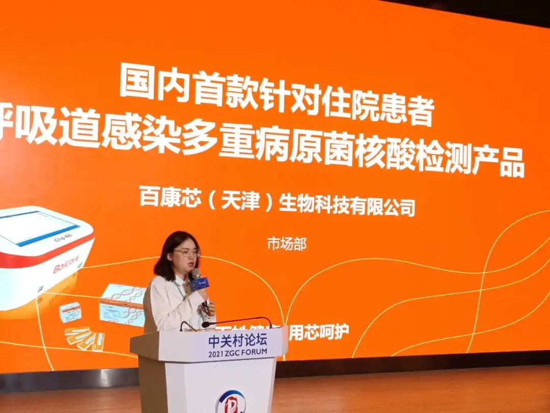中關(guān)村論壇國(guó)際技術(shù)交易大會(huì)(新技術(shù)新產(chǎn)品首發(fā)與推薦大會(huì))上,百康芯市場(chǎng)總監(jiān)白雅麗女士帶來了《國(guó)內(nèi)首款針對(duì)住院患者的呼吸道多病原核酸檢測(cè)產(chǎn)品》報(bào)告,詳細(xì)講述了該產(chǎn)品可實(shí)現(xiàn)一次加樣多指標(biāo)并行檢測(cè),以更加簡(jiǎn)捷的方法和更短的檢測(cè)時(shí)間對(duì)多種病原體進(jìn)行檢測(cè)、分析和報(bào)告。為臨床醫(yī)生提供快速而準(zhǔn)確的檢測(cè)結(jié)果,減少病人等待的窗口期和治療周期,為臨床經(jīng)驗(yàn)用藥提供科學(xué)依據(jù)。 ![]() ![]()