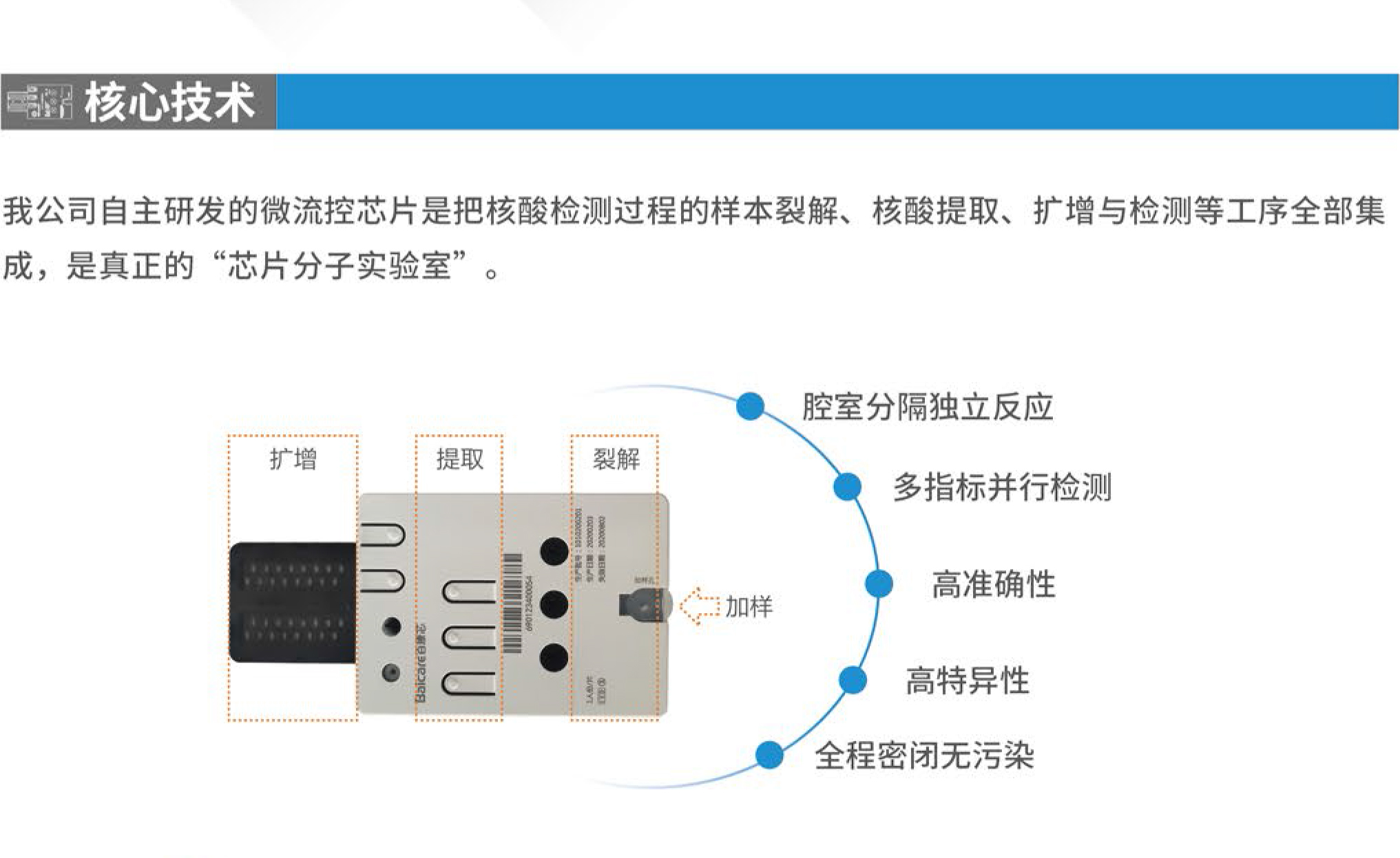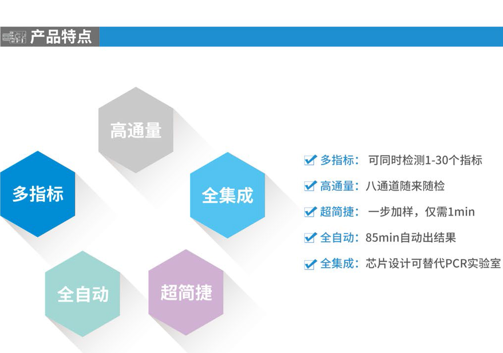 Onestart-1000全集成微流控芯片核酸檢測系統(tǒng)將復(fù)雜樣品破碎技術(shù)、磁珠核酸提取技術(shù)、微流控芯片PCR技術(shù)三大技術(shù)全集成在一起,可以一次對1-60種常見致病菌及其耐藥分型進行快速檢測(1.5小時內(nèi)),解決了傳統(tǒng)病原體培養(yǎng)法手工操作繁瑣、周期長、檢出率低等問題,對傳染病檢測、食品安全監(jiān)控、反恐監(jiān)測有著重要意義。系統(tǒng)可鏈接物聯(lián)網(wǎng),自動上傳檢測數(shù)據(jù),實現(xiàn)樣本的在線監(jiān)測、分析、預(yù)警和溯源。